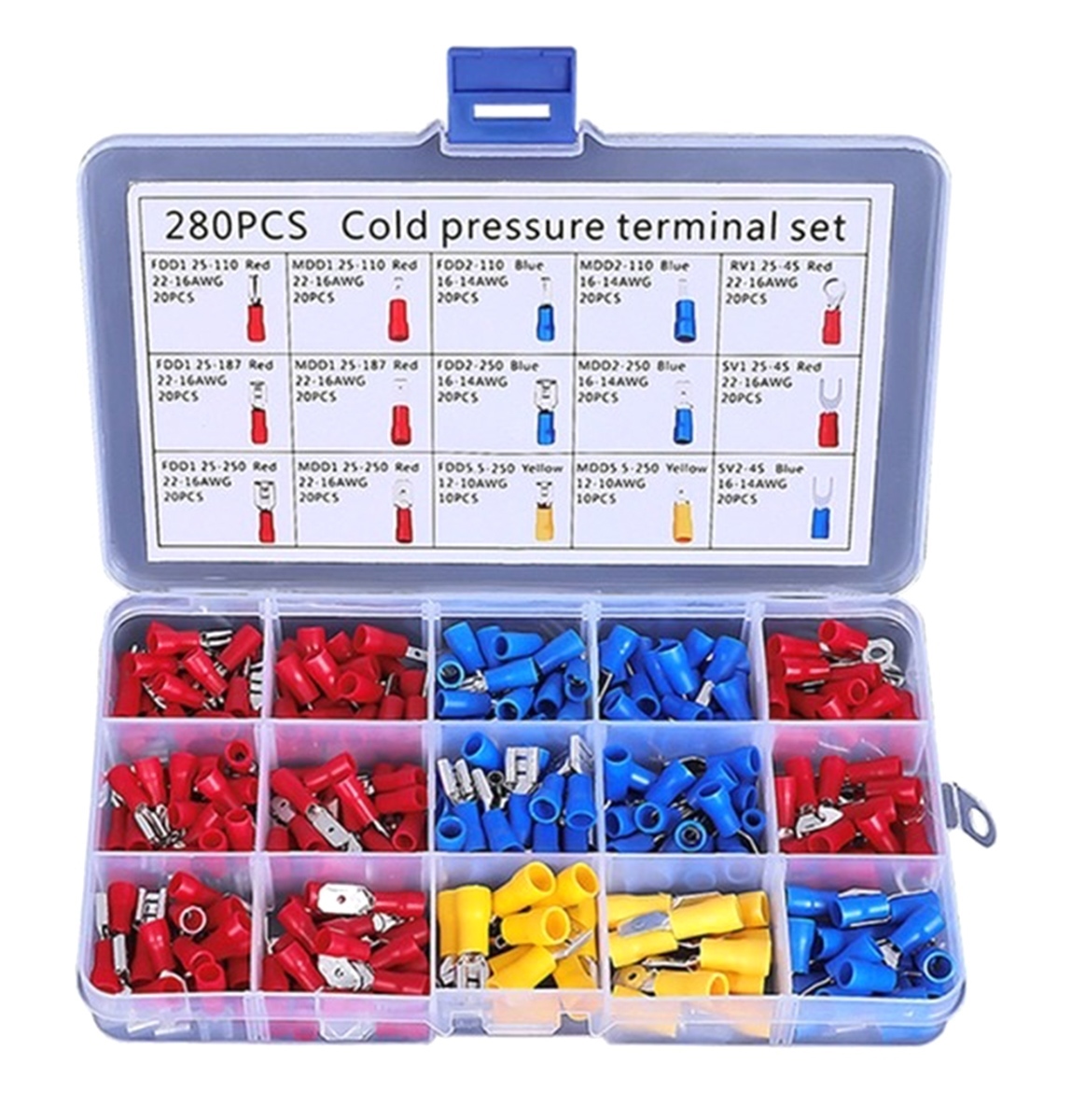 Set 280 de conectori de sertizare izolati, 15 tipuri, in carcasa de plastic