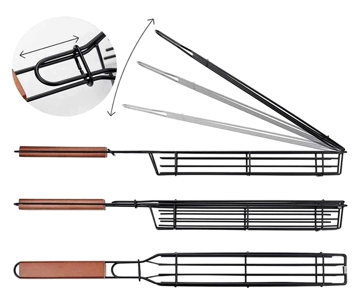 Coș cu blocare pentru grătar legume, pește și carne. Gadgetul perfect pentru toți iubitorii de grătar. Echipat cu un strat antiaderent special, datorită căruia alimentele nu se lipesc de coș în timpul grătarului. Utilizarea deschiderilor largi permite circulația liberă a aerului și grătarul complet. Mânerul lung vă permite să întoarceți mâncarea confortabil, fără riscul de a vă arde.