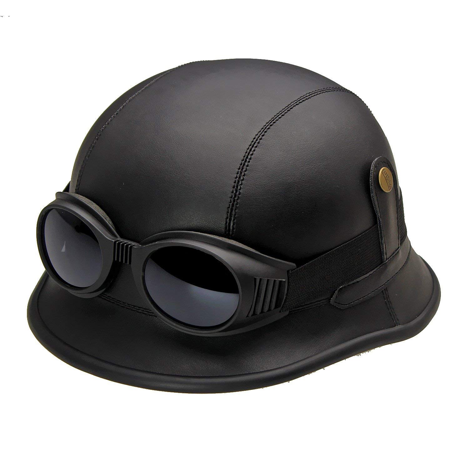 Casca Moto WW2, imbracata in piele ecologica, cu ochelari