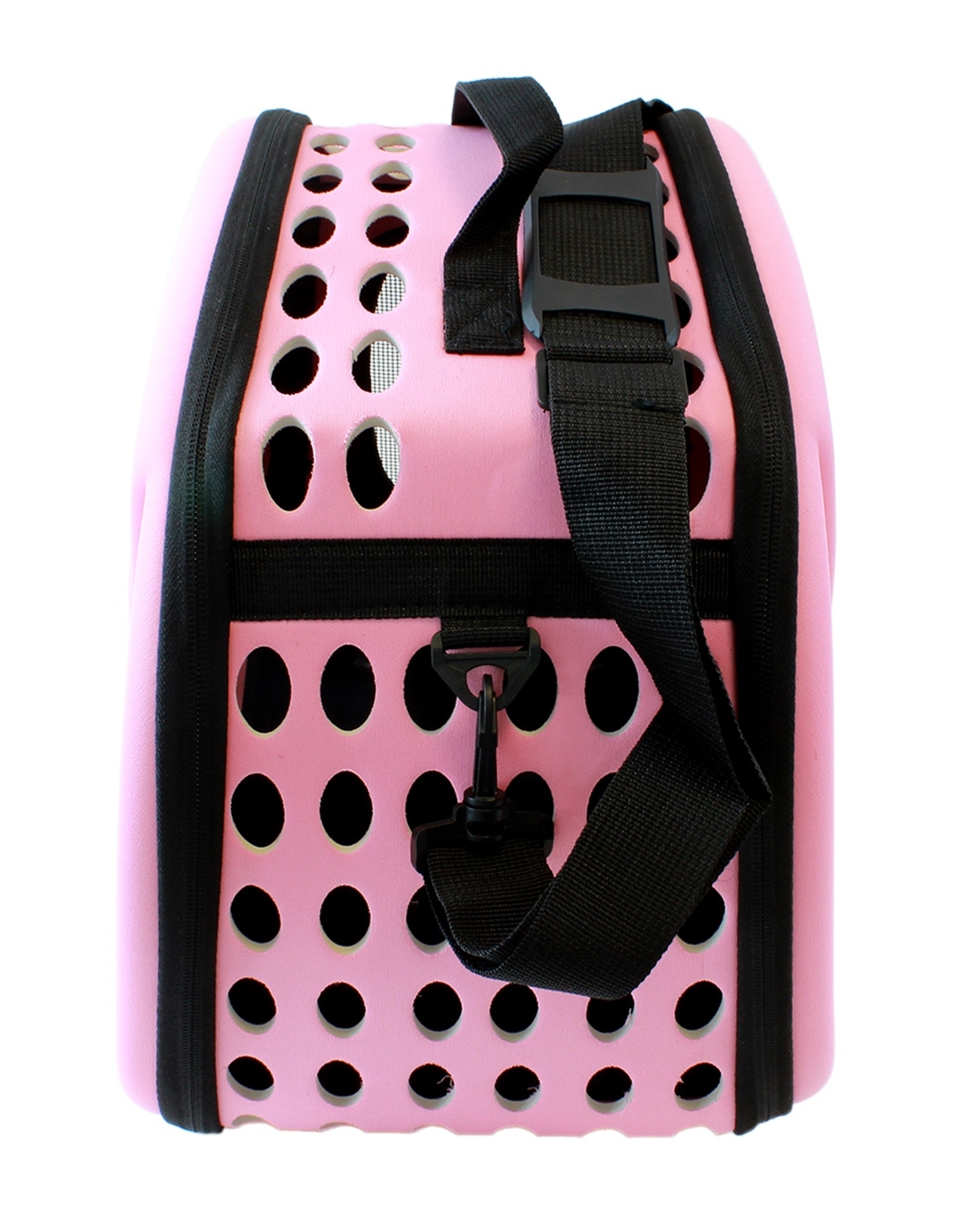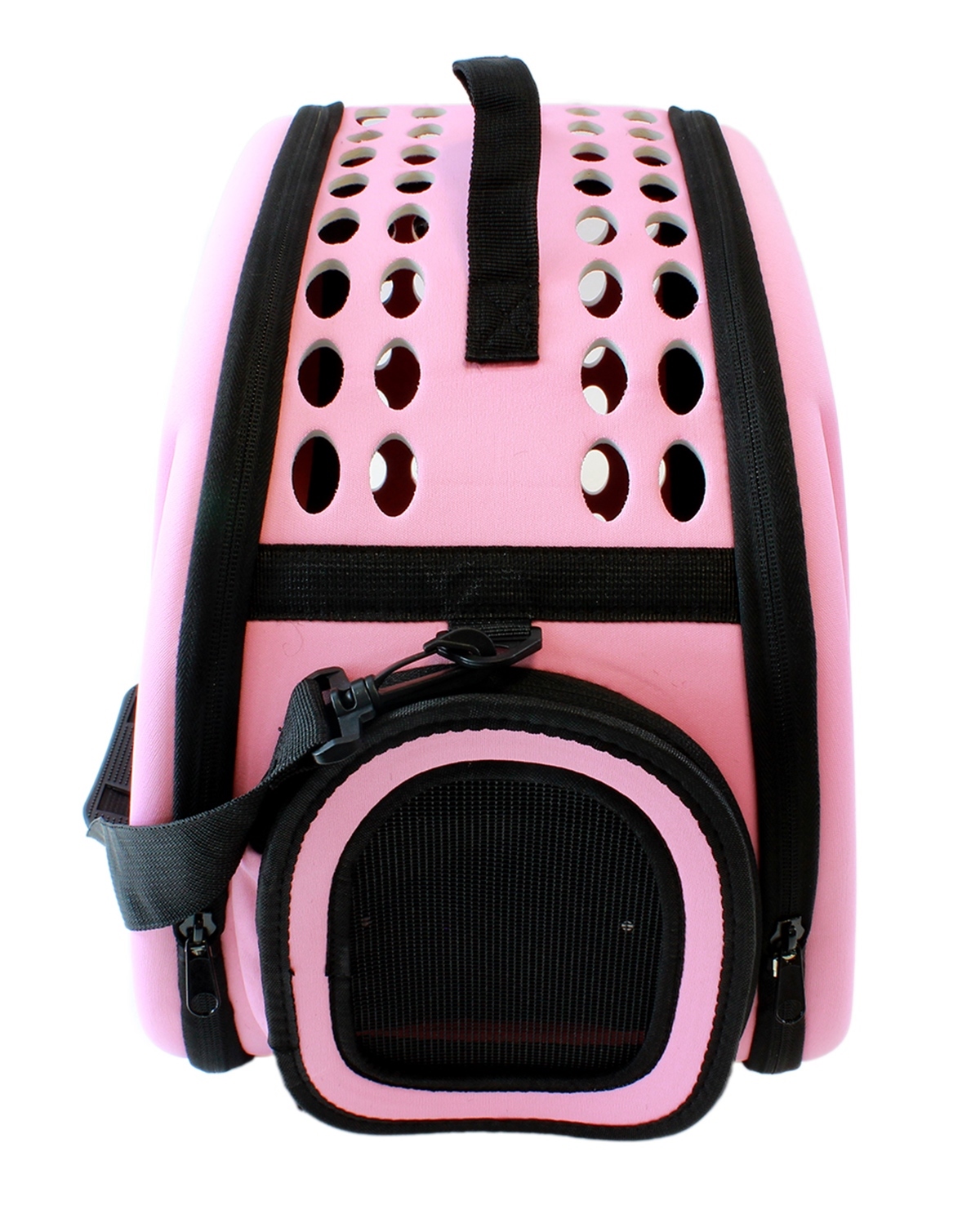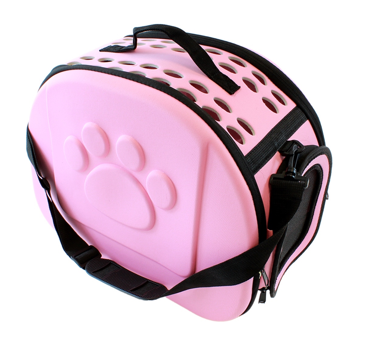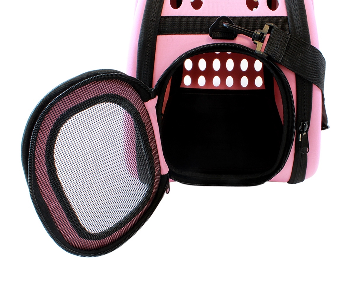 Geantă de transport de înaltă calitate pentru animalele de companie mici. Perfect pentru a ne muta pisica sau iepurele la orice distanță. Designul extrem de confortabil va asigura confort atât pentru noi cât și pentru animale. Materialul puternic din care au fost confecționate transportoarele, un mâner solid și o curea de umăr reglabilă asigură o utilizare lungă și fără probleme a produsului. Geanta este respirabilă și sigură pentru animalul de companie datorită sistemului de ventilație. Confortul de utilizare este asigurat și de un fermoar dublu pe ambele părți ale suportului.